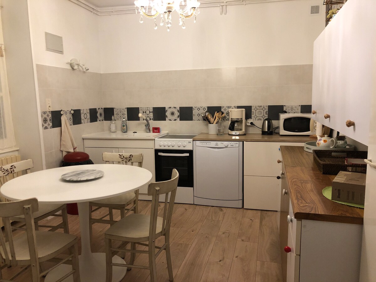 Este alojamiento recién renovado situado en la planta baja a 100 metros del canal de Borgoña, con todas las comodidades. Consta de una habitación con un pequeño jacuzzi de 2 plazas. Una cocina equipada (vitrocerámica, microondas, nevera, cafetera) con su zona de comedor para 2 personas. Una cama de 160/200. Pequeña zona de relajación con TV. Un cuarto de baño con cabina de ducha de hidromasaje, lavabo, toallero eléctrico e inodoro. Se proporciona ropa de cama.