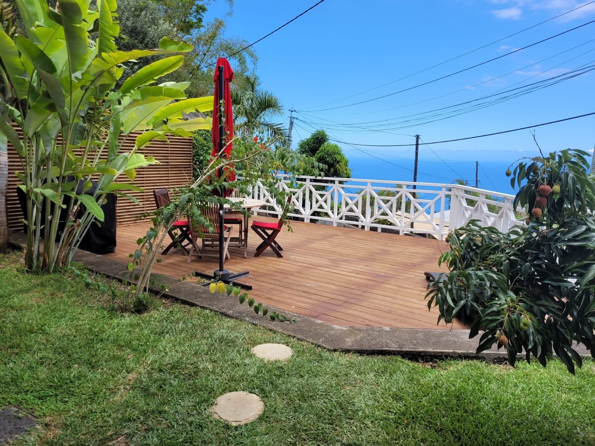Bonito apartamento de 45 m2 situado a 5 km del centro de Saint Leu, capital del Surf y el parapente. Vista al mar y 100m2 de exterior terraza y jardín. Cocina equipada, zona de noche con cama doble de 90×200 (cama King size 180×200 junta), cuarto de baño con ducha e inodoro y vestidor. sala de estar con sofá cama (cama 140×190) televisión XL,... ¡Exterior con barbacoa, hamaca, mesas , sombrilla, sillas... y jacuzzi de calidad!