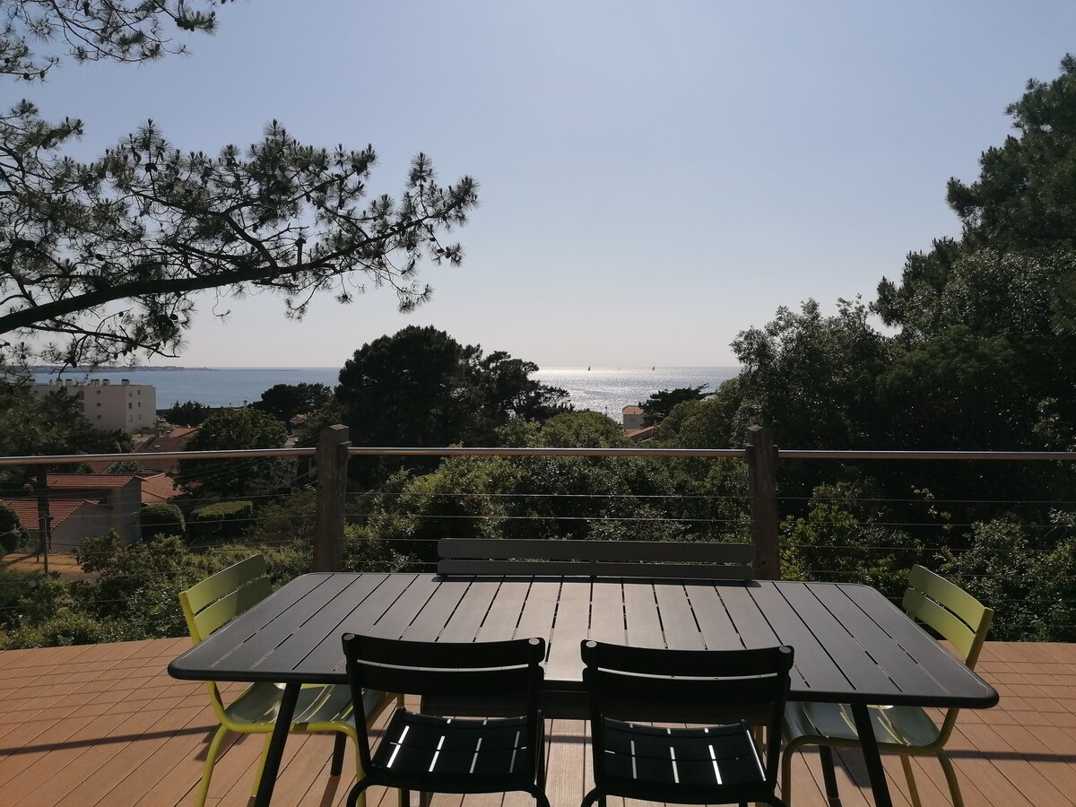 Parte de villa situada a 300 metros de la playa, ofrece en la 1.ª planta, con acceso independiente, dos amplias suites principales con dos camas de 200 x 160, dos cuartos de baño con ducha y dos aseos, así como una sala de estar con cocina equipada y una gran terraza continua orientada al sur. Disfrutará de la decoración elegida con buen gusto, la tranquilidad de los alrededores y la proximidad inmediata al bosque costero. *** Temporada de verano: alquiler solo por semana de viernes, sábado o domingo***