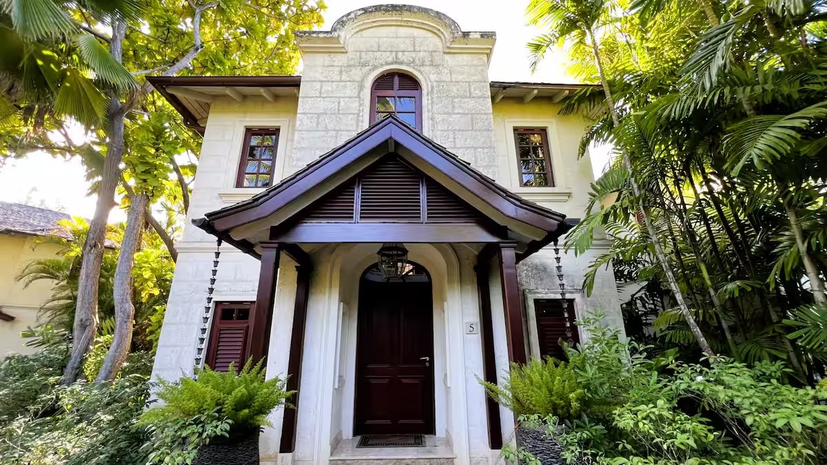 Perched above Sailors Gully, Ancient Grove One immerses guests in a lush tropical landscape alive with birdsong and sweeping ocean views. The villa includes a master king suite with semi-outdoor shower, two queen bedrooms with shared bathroom, a private 3-bedroom family suite, and a separate cottage en-suite bedroom. With a fully equipped kitchen, dining for up to 16, large living areas, and a 30-foot infinity pool overlooking the ocean, AG One is your ultimate Barbados retreat.