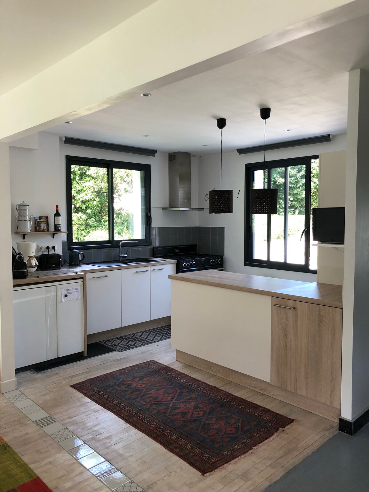 Venga a disfrutar de esta casa adosada con carácter (90 m2) en una zona tranquila de Brest. Ideal estancias familiares A 5 minutos del centro de la ciudad en coche Estacionamiento gratuito Equipado para 5 con posibilidad de una cama adicional para 2 personas en el altillo. Habitación con cama doble y una con cama doble y individual TV, WiFi Pequeño jardín agradable con terraza Vivienda para no fumadores. No es un lugar de fiestas. No se aceptarán solicitudes de grupos de jóvenes y estudiantes.