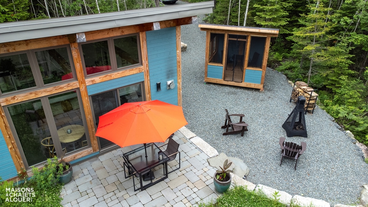 Situado en plena naturaleza, frente al aliviadero del lago Drolet y el río Drolet, en las montañas de la región del granito, erigido en 4 acres de terreno en una tierra de bosques. La ruta de motos de nieve y todoterreno pasa cerca. Situado a 2 km del Museo del Granito y de los senderos de la montaña del Morne, cerca del monte Megantic. Un lugar de ensueño para observar las estrellas y cocinar en una hoguera al aire libre.
