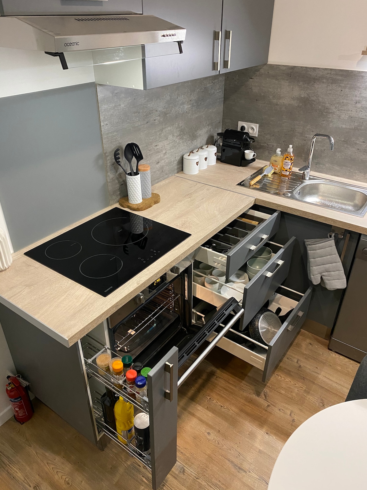 Acogedor estudio de 40 m². Acceso directo a través de su pequeña terraza desde el aparcamiento cercano. Un lugar de vida a la vez natural y moderno donde el ambiente amaderado y colorido se alterna con un estilo más acogedor. Es sencillo, funcional y modular para que todos encuentren lo que buscan en función de las necesidades relacionadas con su estancia. Apartamento tranquilo y seguro. Es adyacente al mío y a menudo estoy en el lugar. Estaré disponible cuando sea necesario.