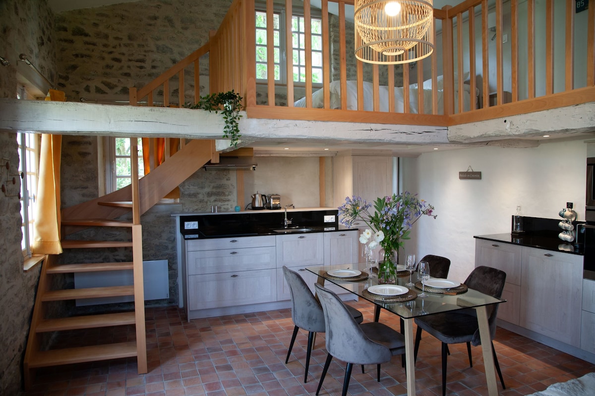 En pleno centro de Dinan, déjate llevar por la elegancia de la antigua Roma. Relájese en una suite de lujo con balneario privado 🛁. Disfruta de la comodidad de una cama queen size con ropa de cama de hotel 🛏️, una cocina equipada, una televisión conectada con Netflix, wifi de fibra y una terraza privada. A dos pasos de la Torre del Reloj y del pintoresco Jerzual. Aparcamientos, restaurantes y tiendas en las inmediaciones. Todo está preparado para una escapada romántica inolvidable ❤️.