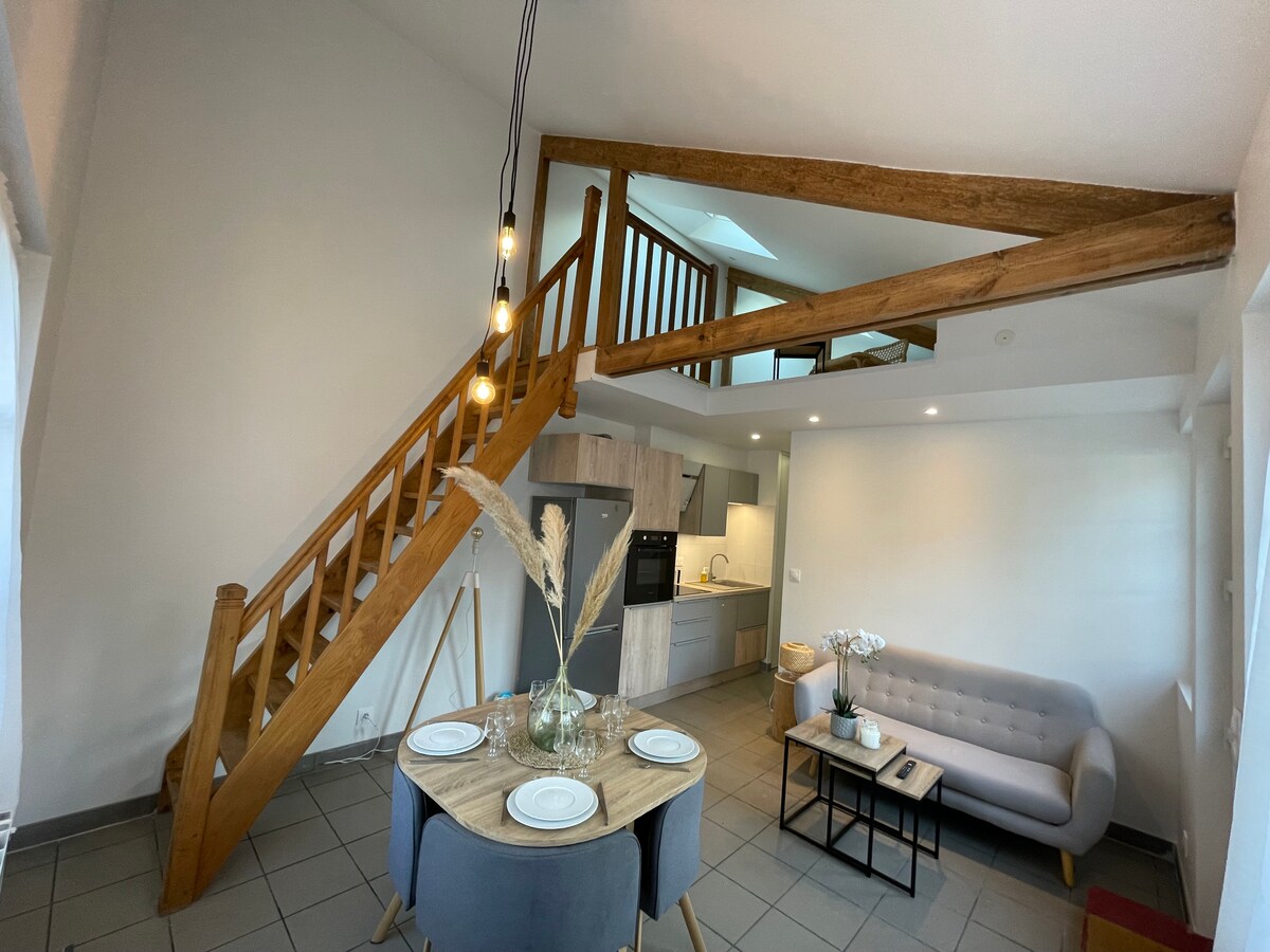 En el corazón de Saint-Lô, a orillas del Vire y frente a la estación de tren, nuestro apartamento de 35 m² totalmente renovado le seducirá por su luminosidad y comodidad. Con una ubicación ideal, se encuentra a 200 metros de la estación de tren, al lado de la playa Verte, a 5 minutos a pie de las tiendas y restaurantes, y a 8 minutos del ayuntamiento y la plaza del mercado. Es perfecto para personas que viajan solas, en pareja o viajeros de negocios. Este alojamiento es transitable, verá las murallas en el lado de la cocina y el Vire en el lado de la logia.