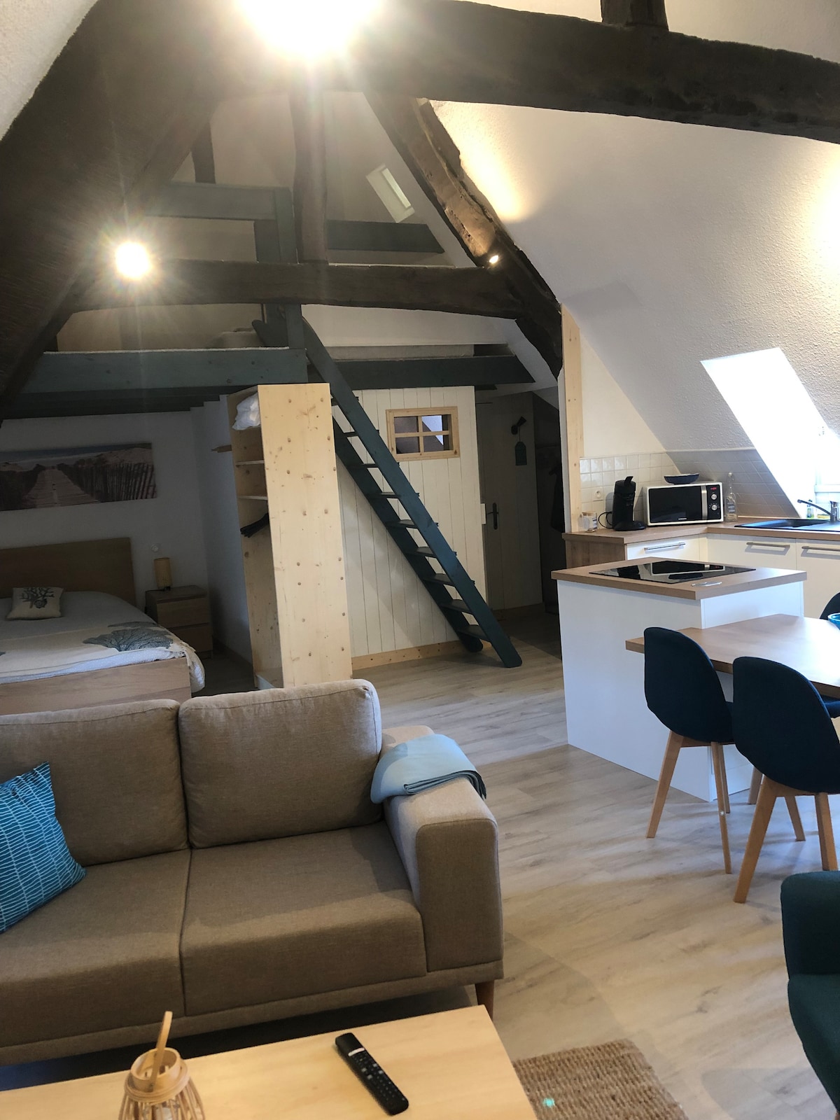 En una decoración cuidada y moderna, el apartamento cuenta con conexión wifi gratuita y sala de estar con TV. Se accede a través de una escalera común. El apartamento incluye: cocina americana equipada (con lavavajillas y lavadora secadora) sala de estar 3 dormitorios ropa de cama hecha en Bretaña 2 baños 2 aseos Cuna o silla a petición