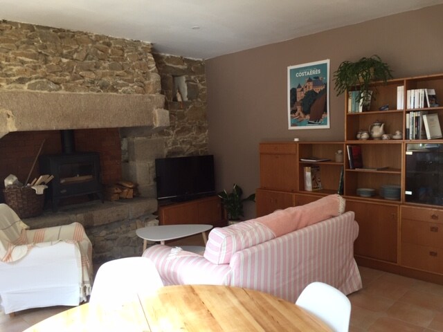 Casa rural situada en un entorno verde y tranquilo, a 50 metros del mar en el corazón de la costa de granito rosa. Cerca del pueblo con todas sus tiendas. Alojamiento agradable, amplio y luminoso, arriba una habitación cálida, cocina totalmente equipada, cuarto de baño con ducha a ras de suelo, terraza individual con vistas al jardín arbolado.