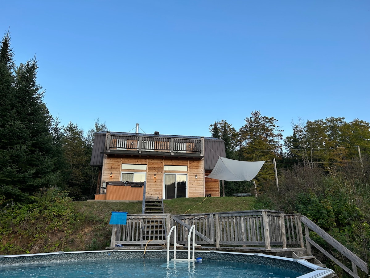 ¡El chalet de l'Orée du Bois Joli se encuentra en Val-David y tiene una vista que domina la copa de los árboles! ¡Instálate en el spa para observar las estrellas! Camine con raquetas de nieve por la propiedad de un acre que bordea las laderas del Monte Alta. ¡Relájese en nuestra hamaca gigante interior y disfrute de la magia de este refugio de madera! Senderismo, pistas de esquí, tres hermosas playas y muchas actividades y atracciones de los alrededores te esperan.
