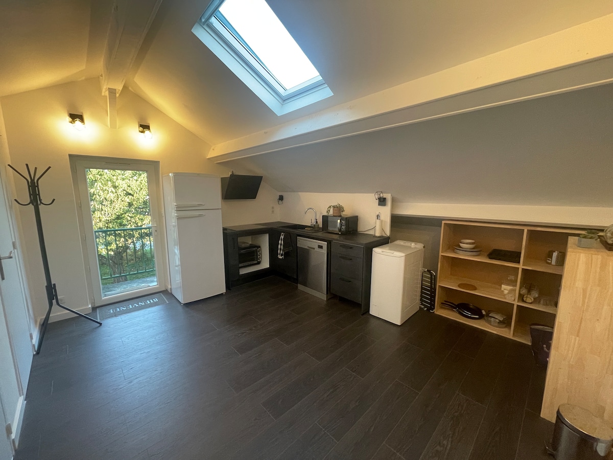 Apartamento atípico con vigas en el techo totalmente reformado. Te maravillará su encanto único y las claraboyas que aportan una hermosa luminosidad a la vivienda. Tiene una entrada independiente por encima del propietario tranquilo cerca de las empresas del metro y tiendas. Este alojamiento tiene un estilo decididamente único.