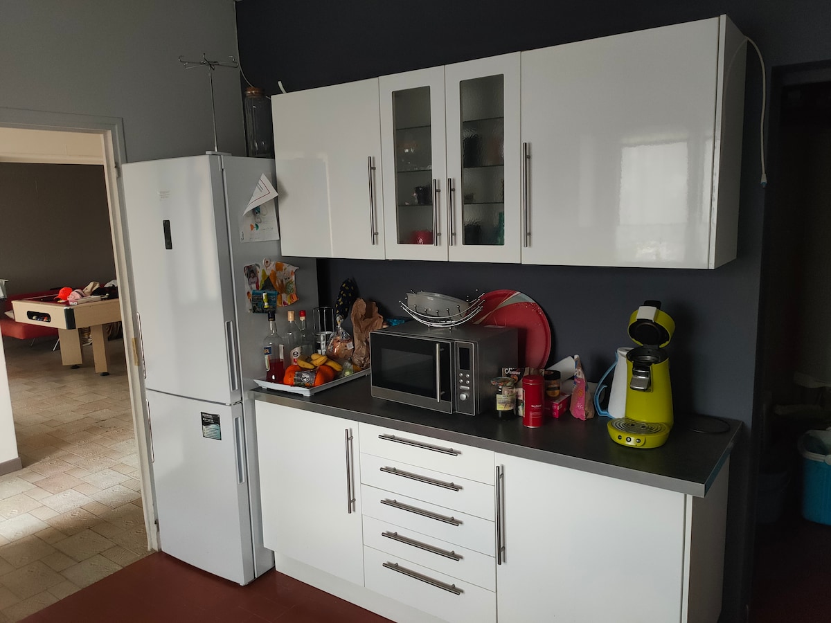 Olvídate de tus preocupaciones en este alojamiento espacioso y sereno. Casa de barrio de tipo 4 con una gran parcela agradable con muebles de jardín, pista de petanca, estacionamiento en el camino de entrada Sala de estar equipada con billar, habitaciones con vestidor, wifi, aire acondicionado en la sala de estar. 2 camas grandes en 2 dormitorios separados y una cama pequeña de pago en uno de los 2 dormitorios Cerca del metro (15 minutos a pie, 5 minutos en automóvil), cerca de tiendas de barrio (5 minutos)