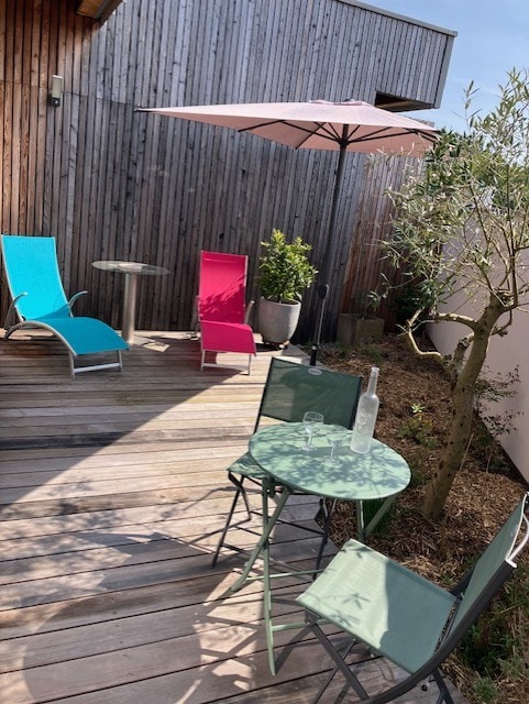 A las puertas del océano. Alojamiento nuevo con aire acondicionado de 4 estrellas para dos adultos, de una sola planta con terraza y aparcamiento. Adosado a nuestra casa pero con acceso privado, muy bien equipado con lavadora y lavavajillas. Televisores conectados a NETFLIX Se ofrece café, té y zumo de naranja. Relájese en un bello entorno tranquilo cerca de las playas y lugares turísticos. Cerca de tiendas, panaderías, farmacia, consultorio médico a 400 m e Intermarché a 800 m.