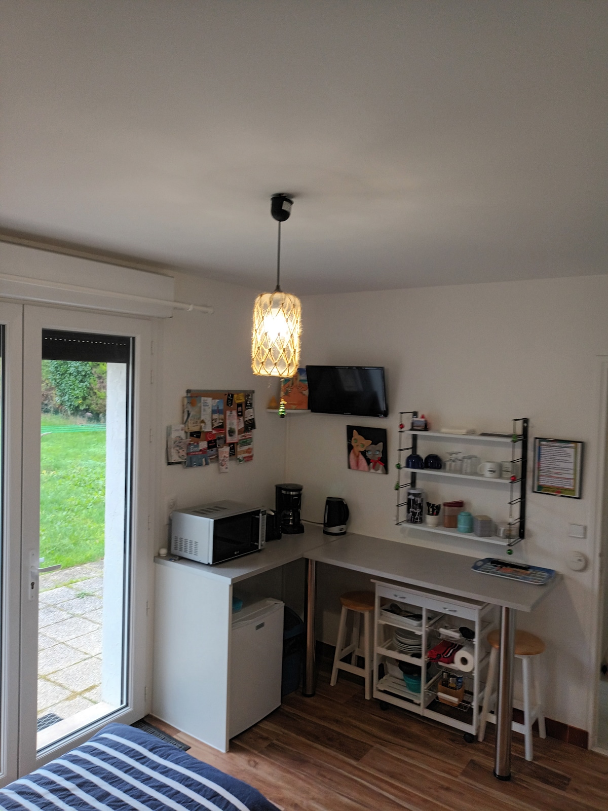 Amantes de la naturaleza, estaréis encantados: en el corazón de un tranquilo y verde distrito suburbano, os espera un estudio independiente. ¡Maníacos de la brizna de hierba que sobresale, abstenerse! Aquí, practicamos el corte sostenible para dejar que la flor de los campos y el vuelo de las mariposas florezcan. El pequeño estudio es independiente, pero sin cocina americana. Sin embargo, si quieres cocinar, puedes compartir nuestra cocina de verano, accesible desde tu terraza privada. Ceniceros fuera.