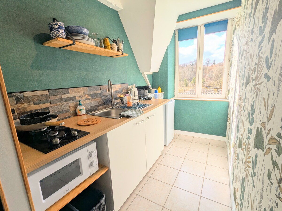 Ubicado en un antiguo molino de harina, Studio Silhem tiene una excelente ubicación tranquila, justo al sur de Limoges, cerca de la autopista A20 que atraviesa el centro de Francia y a poca distancia a pie de la estación de tren de St Germain les Belles. Decoración luminosa y colorida con una cálida bienvenida. Cocina equipada con vitrocerámica de gas, microondas, hervidor de agua, nevera y cafetera. Ideal para una noche de parada en un largo viaje para refrescarse. Podemos adaptarnos a todos los horarios de llegada. Mesa y sillas al aire libre más barbacoa disponibles.