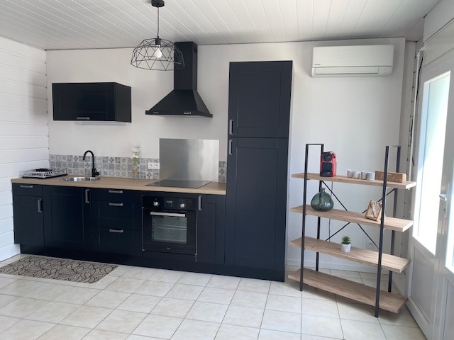 T2 renovado, junto al mar, diseñado para 2 personas, máximo 4, (1 habitación doble, cama 160x200) con un cómodo y de calidad sofá cama. A su disposición: wifi, TV, aire acondicionado, cocina equipada, cafetera, ducha con inodoro, terraza y plancha. Toallas de baño y sábanas incluidas. A 2 minutos tendrá acceso a una panadería, al mercado, a varias tiendas, el centro de la ciudad está a 10 minutos. Se quedará dormido acunado por el sonido de las olas. Será un placer recibirte.