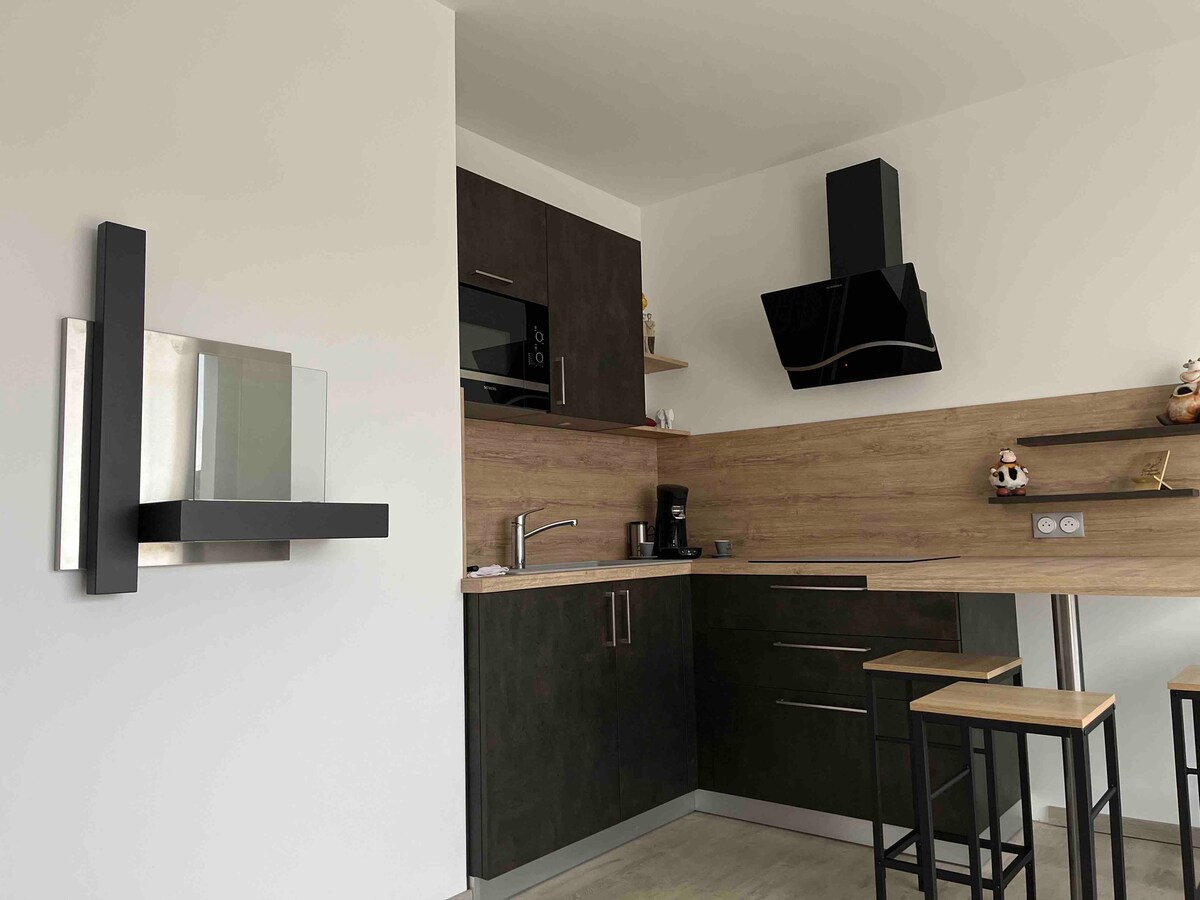 Ya sea para pasar un buen rato en familia, un fin de semana en pareja o simplemente por trabajo, venga a relajarse en nuestro alojamiento de una sola planta contiguo a nuestra casa. Dispondrá de una sala de estar-cocina con sofá cama (cama de 140), un dormitorio con cama de 160 y ducha a ras de suelo. Se proporcionan sábanas y toallas . Disponible bajo petición: cuna, bañera y trona. A solo 1,5 km del inicio de la pasarela himalaya más larga de Francia