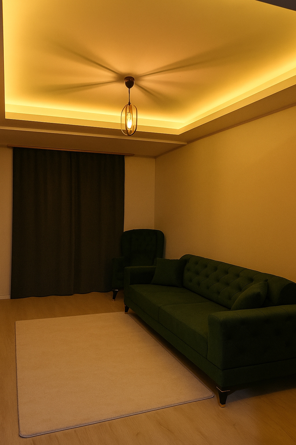 Relájate, relájate en tu espacio en New Inn. Experimenta un acogedor apartamento de 2 dormitorios en una hermosa residencia central, cerca del centro comercial Serdivan Cadde 54. Este elegante refugio combina comodidad y estilo, proporcionando el centro perfecto para tu exploración de Sakarya. Con su diseño moderno, techos altos y cocina bien equipada, encontrarás relajación y comodidad. Mantente conectado con wifi rápido o relájate en el sofá. Con el lago Sabanca, a poca distancia en coche, sumérgete en la belleza natural.