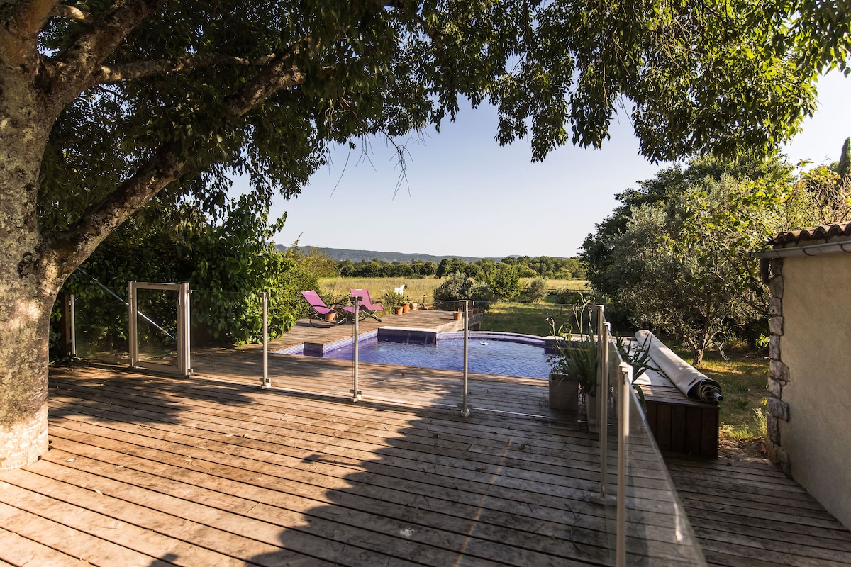 Masía provenzal familia, vista+, pisc.lagon, cerca de Uzès