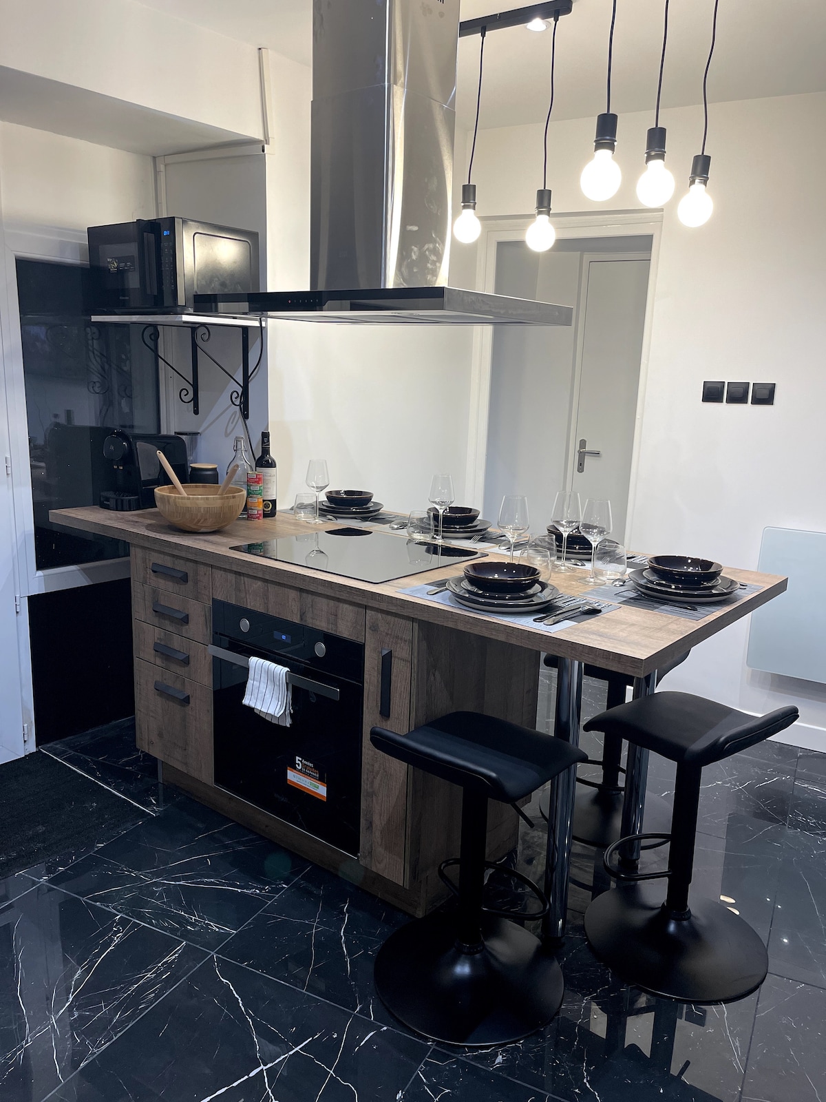 Venga a descubrir este magnífico apartamento «Black & White» de 53 m² recién reformado solo para usted. Hemos creado un lugar fuera de lo común para una estancia única. Situado a 500 metros de las termas de Salies-De-Béarn y a 250 metros de los restaurantes/tiendas, esta propiedad está idealmente situada para descubrir esta pequeña ciudad con encanto. Aparcamiento gratuito disponible en el lugar. En el interior encontrará un jacuzzi de 5 plazas y una cocina totalmente equipada. ¡Te estamos esperando!