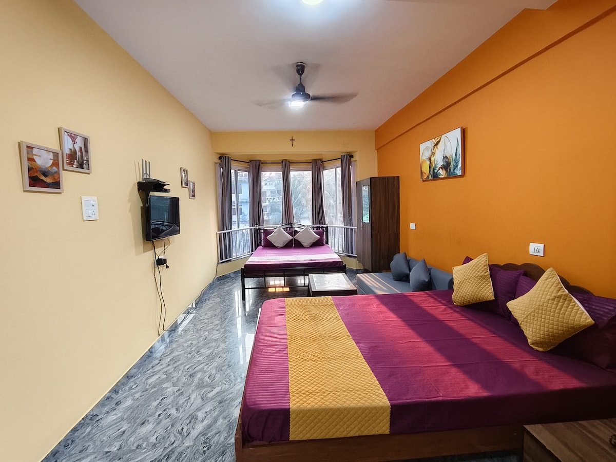 Casa De Johria – Comodidad boutique en el corazón de Calangute 🌴 Le damos la bienvenida a Casa De Johria, su encantador hotel boutique en el norte de Goa, cuidadosamente administrado por un Superanfitrión de Airbnb que cree en la hospitalidad cálida y en la comodidad total de los huéspedes. Se pueden alquilar automóviles y bicicletas. Se entregan 2 botellas de agua de cortesía una sola vez al momento del registro. Desayuno disponible en el establecimiento bajo pedido. 150 por plato, servido directamente en su habitación. 🕖 Horario: 7:00 a. m. a 10:00 a. m. (estrictamente) Carta de menú disponible en la habitación.