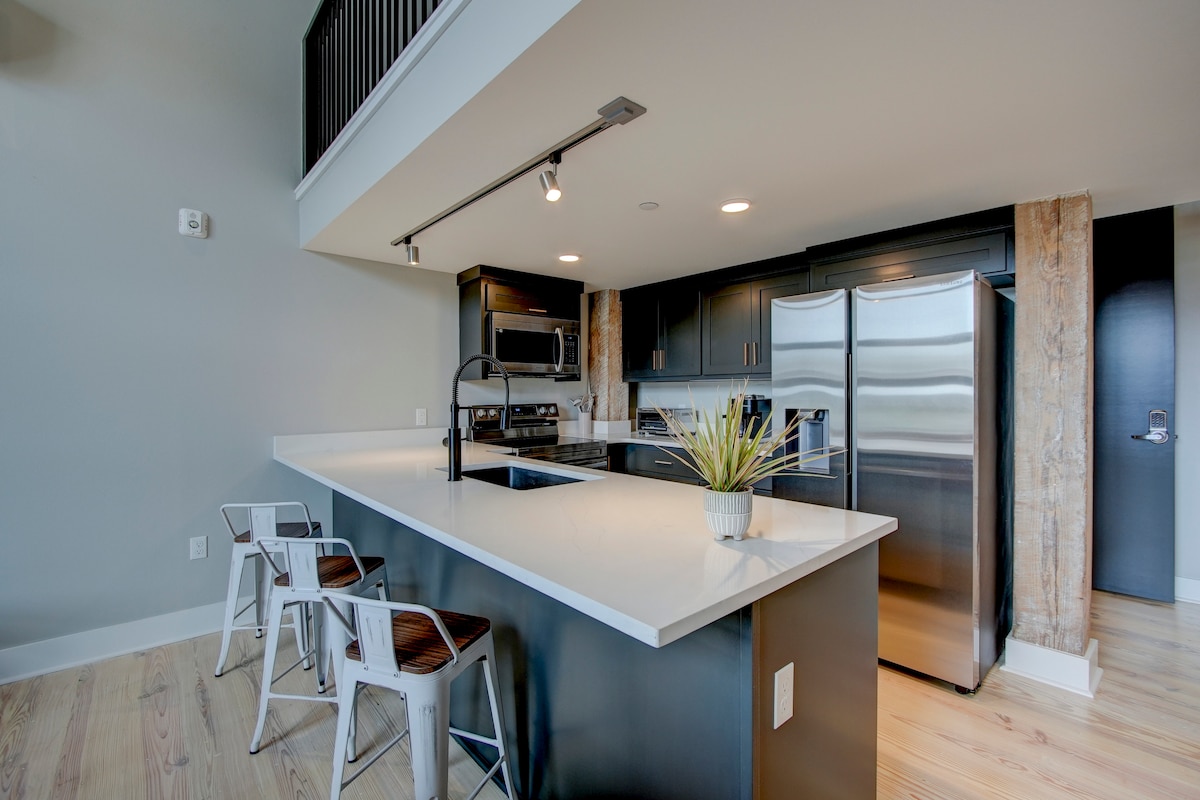 Downtown- IndoorParking, GameRoom, Patio, and Gym!