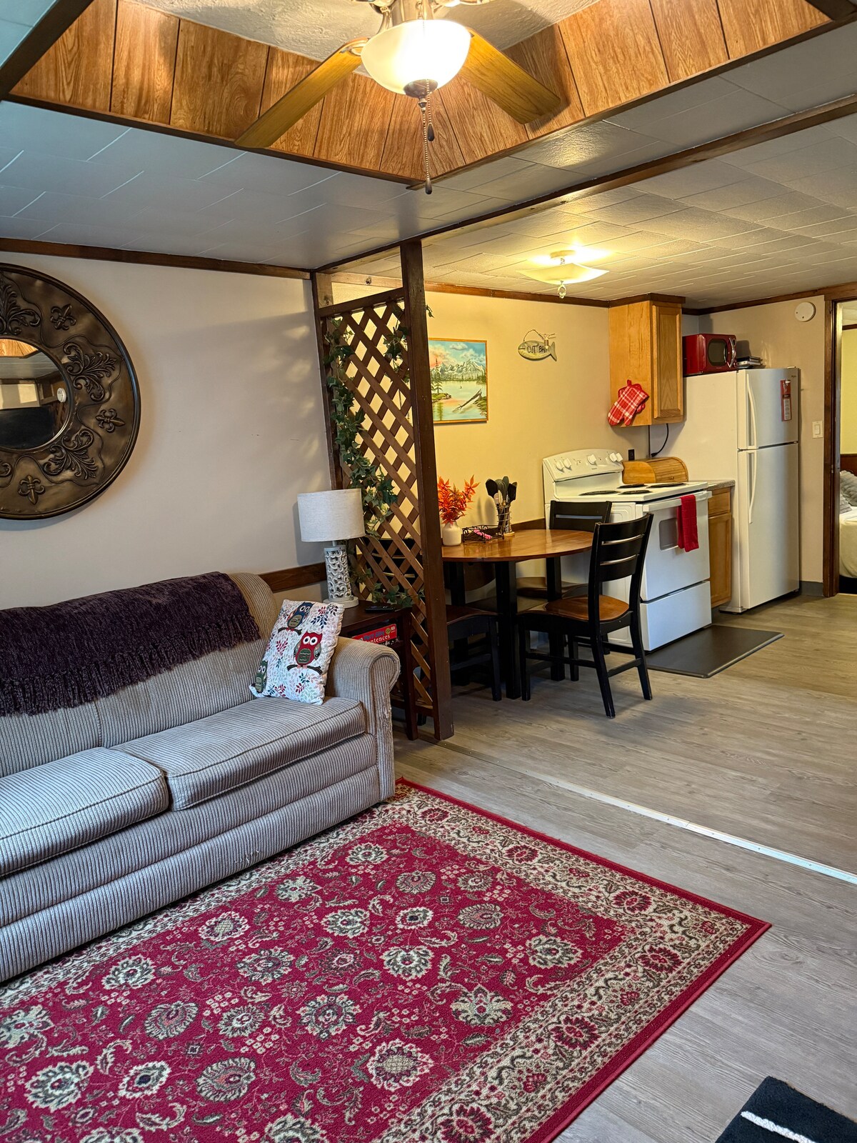 Muy superior a las habitaciones de hotel de la zona, este apartamento de 1 dormitorio de ALTA GAMA está equipado con WIFI GRATIS, televisores ROKU de 50" y 32" (usa tus aplicaciones favoritas), televisión por cable a través de la aplicación Spectrum, reproductor de DVD/CD/Blue Ray, bidé, lavadora y secadora combinadas, bañera de hidromasaje, cocina equipada. Dormitorio con la mejor cama tamaño king, armario/ropero, cómoda, mesitas de noche, baño y sala de estar con sofá cama tamaño queen fácil de usar. Gas, electricidad, agua, remoción de nieve, estacionamiento, pisos de madera dura real, cocina/baño de azulejos. ¡ENORMES DESCUENTOS PARA ESTANCIAS MÁS LARGAS!