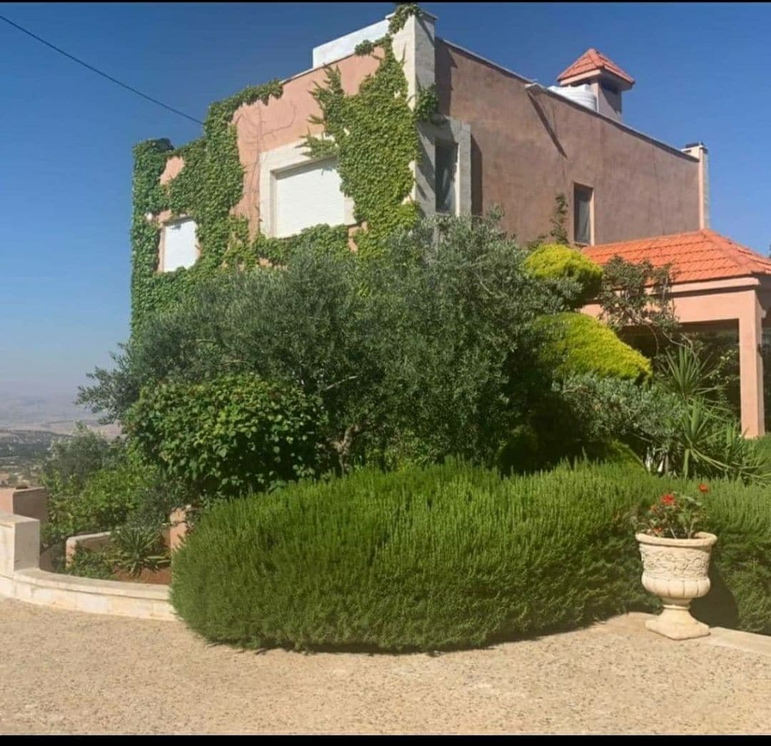 Relájate en este impresionante resort privado en la cima de la montaña con impresionantes vistas de los bosques de Zaia y Ajloun y el horizonte de Amán. Relájate junto a la piscina o en el exuberante jardín rodeado de aire fresco de montaña. Ubicado en el histórico Gilad, provincia de Balqa, a solo 20 km de Amán, con tiendas y restaurantes locales a pocos minutos. Las características incluyen aire acondicionado en todas las habitaciones, calefacción central, una terraza en la azotea con vistas de 360° y un jardinero/conserje en el lugar para su comodidad.