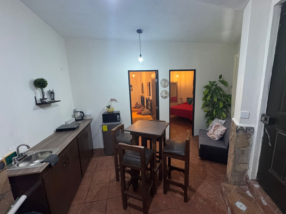 Espacio cuidadosamente diseñado para brindar comodidad, privacidad y una experiencia agradable desde el primer momento. Cuenta con decoración moderna, iluminación cálida y detalles que crean un ambiente íntimo y relajante. Cama con blancos de calidad. Comedor funcional Mini cine privado para noches de película. Baño impecable y equipado. Nuestro departamento se adapta para cenar romanticas hasta personas que visitan la ciudad por trabajo ¡Todo listo para una estancia placentera!