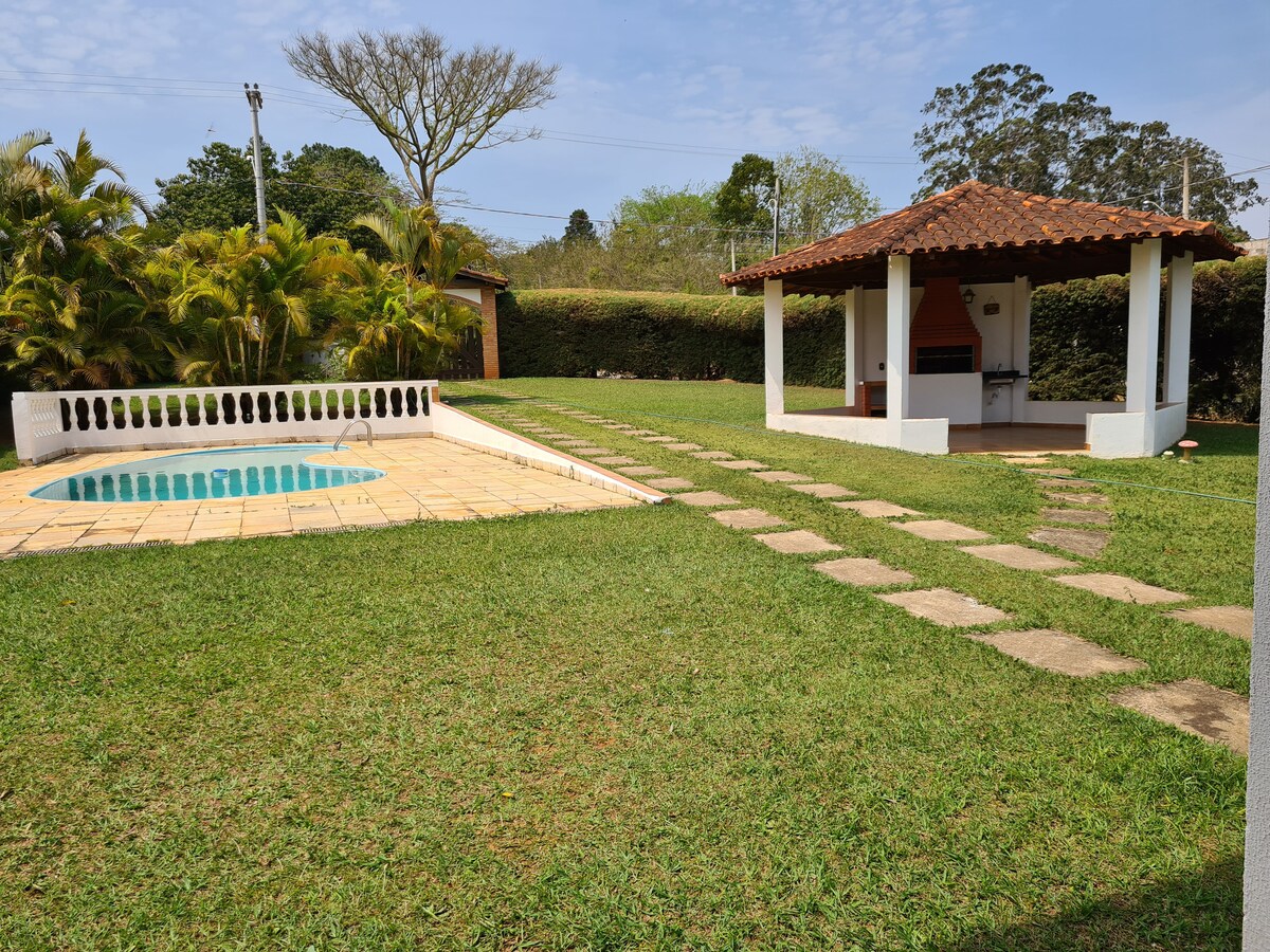 Casa de campo en condominio cerrado, con parrilla, piscina con hidromasaje, mesa de billar, huerta, 3 dormitorios, baño, sala de estar espaciosa con cocina americana, internet de fibra óptica con 120mb. Condominio con hermosos lagos, senderos y bosques, mucha naturaleza y total seguridad. Ideal para relajarse con amigos, gran parrilla, casa y muebles nuevos.