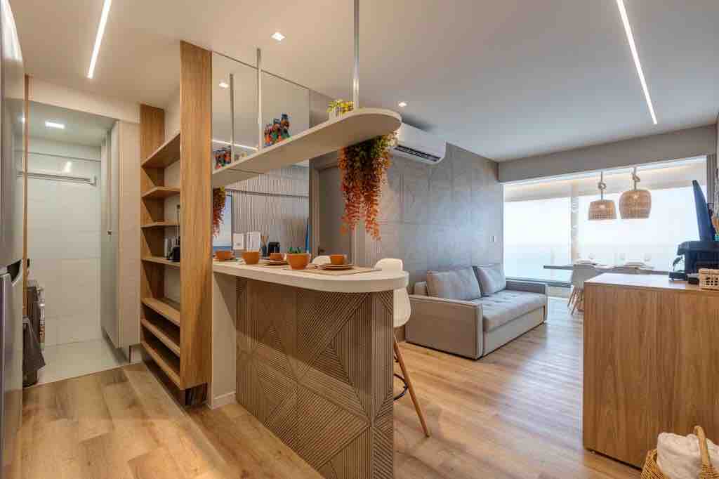 Cómodo, moderno y finamente decorado apartamento en el nuevo Edificio 535 Barra, con una hermosa vista de Praia do Farol da Barra. El apartamento dispone de aire acondicionado split en todas las estancias, Smart TV 50", wifi 500Mb (fibra óptica), lavadora y secadora, piscina, gimnasio y parking privado. Ubicación céntrica y privilegiada, cerca de la animada vida nocturna de Barra ya pocos metros de sus deliciosas piscinas naturales y de su principal punto turístico - Farol da Barra.