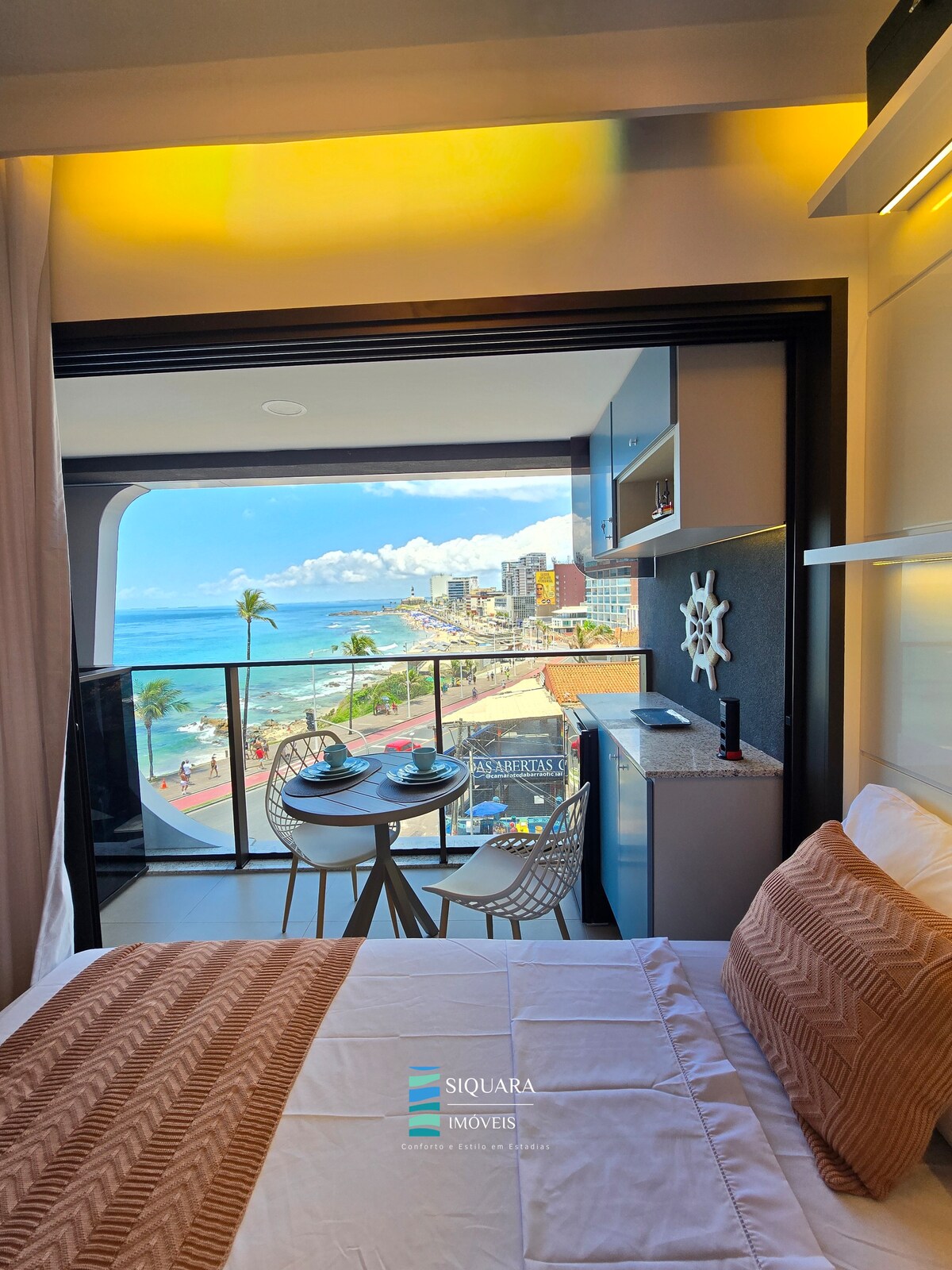 Apartamento (dormitorio y sala de estar) funcional de 30 m2 de estilo contemporáneo en edificio moderno en una de las principales calles del barrio de Barra, área de relevante interés paisajístico, turístico y cultural de Salvador. Excelente ubicación (a solo 160 metros de la playa; 300 metros del Faro de Barra; a 10 minutos a pie del Puerto de Barra). La Rua Marquês de Leão, y sus alrededores, cuenta con excelentes bares, restaurantes, cafeterías, farmacias, mercados, etc., y conduce directamente al Faro de Barra, el punto principal de la región