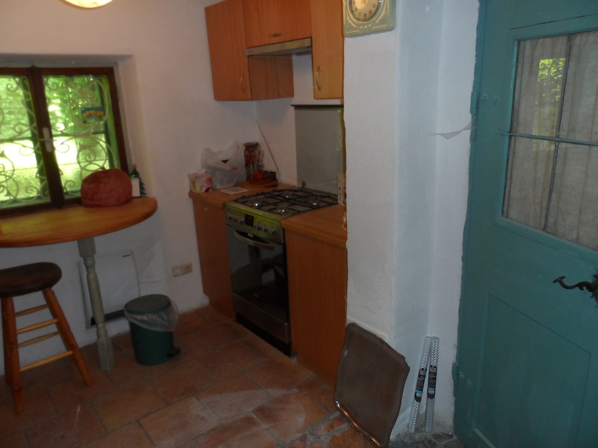 Un pequeño y romántico apartamento en una casa histórica de más de 260 años al pie de la montaña de Untersberg. El pasillo central conecta el salón, la cocina abierta, el baño y un pequeño despacho con un sofá cama. A través de la sala de estar se accede al dormitorio, que está equipado con una cama doble. Una estufa de leña en la sala de estar garantiza noches acogedoras. Un pequeño jardín delantero con juego de comedor te invita a relajarte.