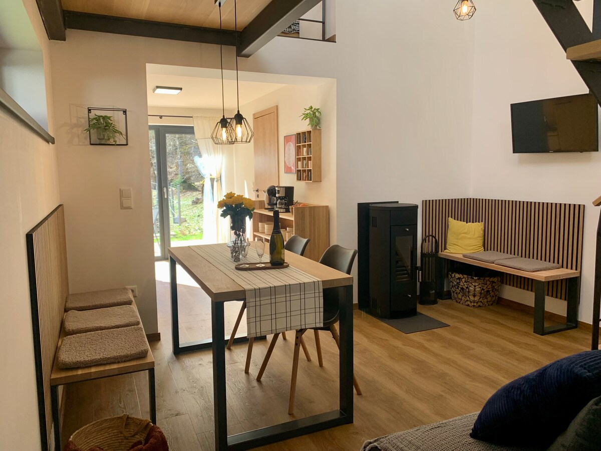 Nuestra pequeña casa es el refugio ideal para aquellos que buscan un ambiente íntimo y acogedor. El interior de diseño elegante combina la comodidad moderna con el encanto rústico. La casa está totalmente equipada y cuenta con todo lo necesario para una estancia relajante. Nuestra pequeña casa no es solo un alojamiento, es una experiencia. Descubre el encanto de la vida pequeña y experimenta días inolvidables en medio de la naturaleza.