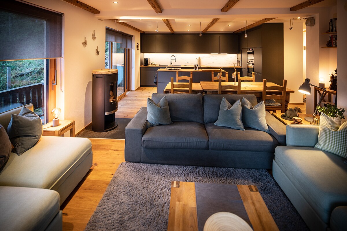 Comodidad y encanto austriaco con estilo contemporáneo. Aquí, en Residenz5360, encontrarás todos los servicios modernos que incluyen WIFI gratuito, Netflix/Amazon Prime y un altavoz Bluetooth Bose. La sala de estar tiene una gran cocina/comedor/sala de estar de planta abierta que se beneficia de 3 grandes puertas de vidrio con vistas a los Alpes austriacos y hasta el lago Wolfgansee. La cocina está totalmente equipada con horno, microondas, placa de inducción, lavavajillas y lavadora/secadora. Hay cunas/sillas altas disponibles de forma gratuita previa solicitud.