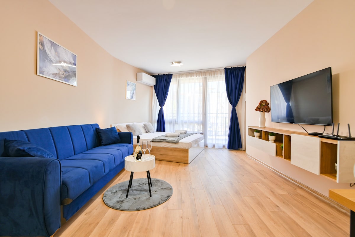 ¡Bienvenido a la escapada de tus sueños! Esta impresionante casa de lujo ubicada a los pies de la montaña Vitosha ofrece una escapada inigualable para aquellos que buscan sofisticación y comodidad. Se encuentra cerca de Ring Mall , IKEA y Ring Road. La amplia sala de estar cuenta con un generoso y lujoso sofá, una cocina increíble, equipada con electrodomésticos modernos y una hermosa pared de TV con chimenea eléctrica. Hay un baño elegante, una cómoda cama doble en el dormitorio y una acogedora terraza. ¡Lugar de estacionamiento gratuito!
