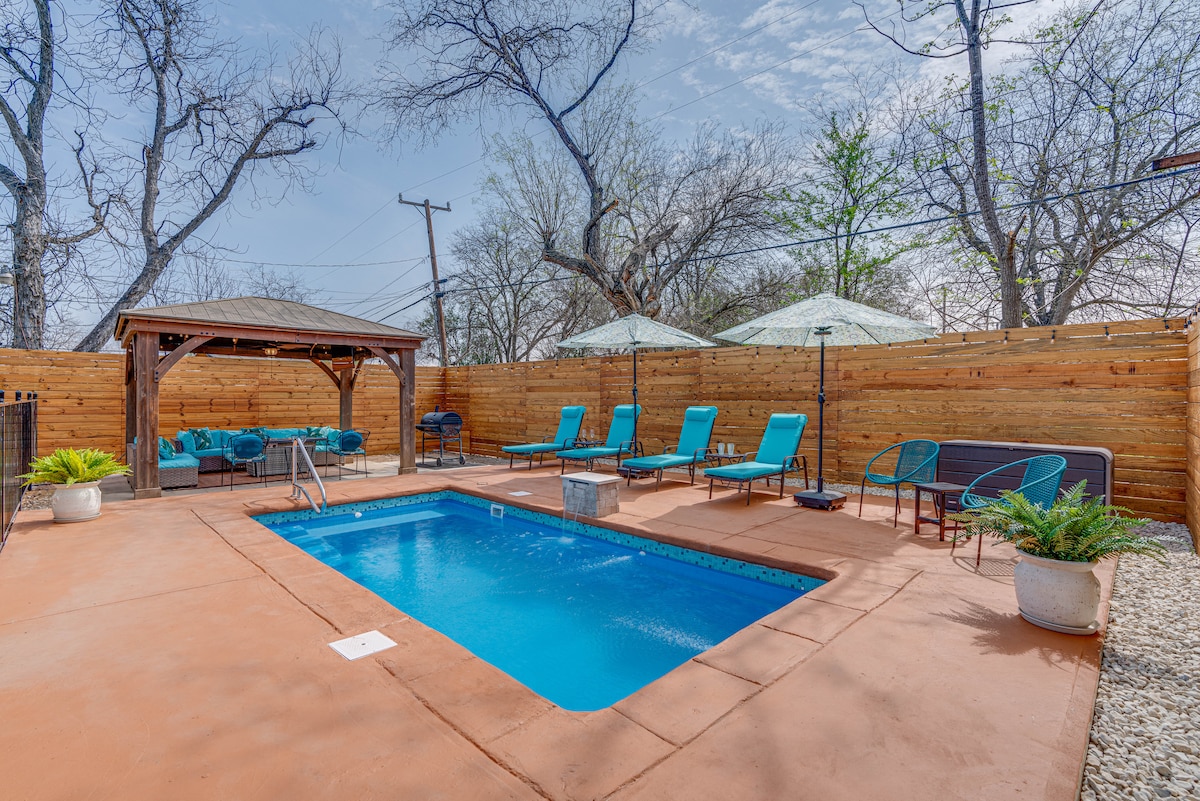 En Casita Azul, te garantizamos una estancia cómoda e inolvidable en el corazón de San Antonio. Nuestra propiedad se encuentra en un barrio prometedor que ofrece tiendas, cafeterías y restaurantes cerca, a poca distancia en coche/Uber. Puedes ir fácilmente al Centro AT&T, al Paseo del Río y al centro de San Antonio sin ningún problema. Disfruta de una escapada en nuestra casa de 3 dormitorios, 2,5 baños y un oasis en el patio trasero con piscina Cowboy, comedor al aire libre, barbacoa, juegos, chimenea y cine en casa de primera línea.