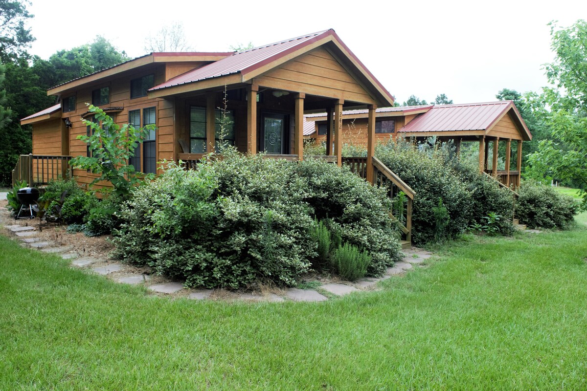 Relájate con toda la familia en este alojamiento tranquilo. Se encuentra a 12 millas del embalse de Toledo Bend. El lago tiene una superficie de 185 000 acres y es conocido por su gran pesca de lubina. La cabaña está en 42 acres y hay mucho espacio para tu bote de lubina. Sin embargo, agregamos electricidad de autocaravana y conexión de agua. También tenemos un edificio histórico en el lugar que una vez fue una farmacia y ahora se utiliza para hacer almohadas al aire libre, delantales y mucho más.