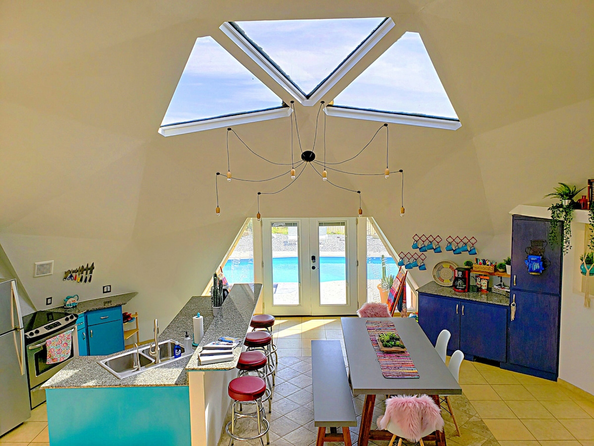 Sumérgete, contempla las estrellas y relájate. Nuestra mágica casa domo de 2,5 acres en el Mojave fue creada como un respiro para la creatividad y la inspiración. Disfruta de una barbacoa, balancéate en las hamacas, pon un disco, saca un libro de nuestra biblioteca o simplemente siéntate en la bañera de vaquero y contempla la puesta de sol. Ubicada a 5 minutos del legendario Integratron (¿alguien quiere un baño de sonido?), nuestra cúpula también está a solo 20 minutos en coche de todo lo que el alto desierto tiene para ofrecer, desde la vida nocturna de Pioneertown hasta la encantadora extensión del Parque Nacional Joshua Tree.