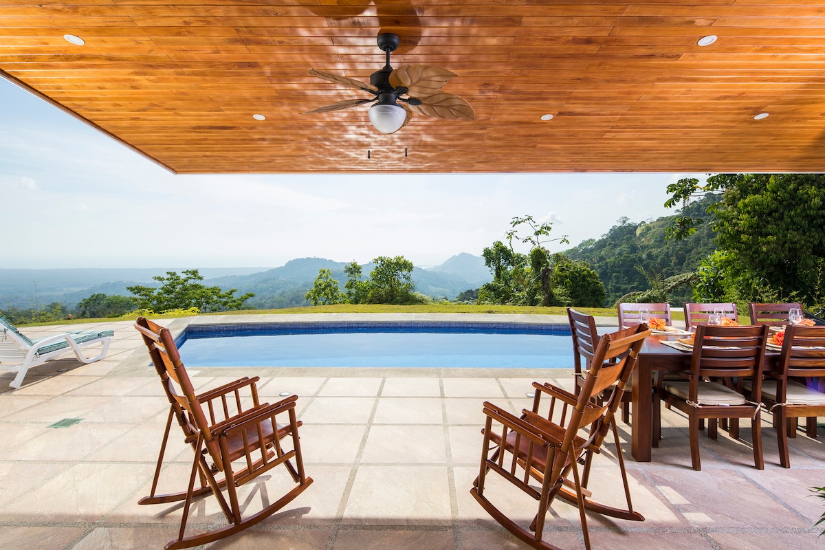 NUEVO ALOJAMIENTO DE LUJO Vistas panorámicas de lujo de 360 grados Four Suites Piscina infinita Arquitectura de lujo moderna Entorno privado y aislado La moderna villa de lujo se encuentra en lo alto de las colinas y ofrece vistas panorámicas de la selva tropical, los valles ondulantes y el lejano océano Pacífico. Las líneas limpias, los techos altos y el vidrio de piso a techo crean espacios luminosos y abiertos que fluyen directamente a la terraza y la piscina infinita, perfectos para relajarse y disfrutar de atardeceres inolvidables.