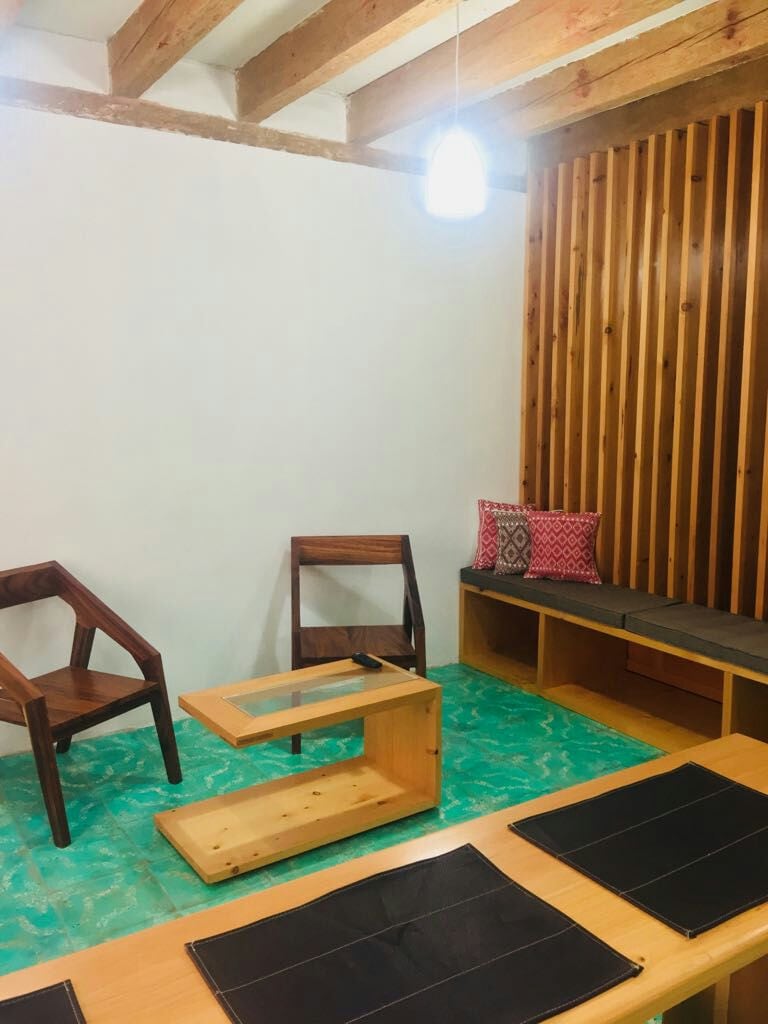 Es un estudio confortable que tiene todo lo necesario para una estancia placentera: cama king size, linda decoración, armario, cocina privada con estufa eléctrica, refrigerador pequeño y baño privado. Tiene mucha luz natural, terraza privada y espacio de jardín techado compartido con techo transparente para poder disfrutar de los días soleados o lluviosos. Es un estudio silencioso para disfrutar de su sueño nocturno a pocos pasos de las principales actividades de la ciudad. IG @todosancris