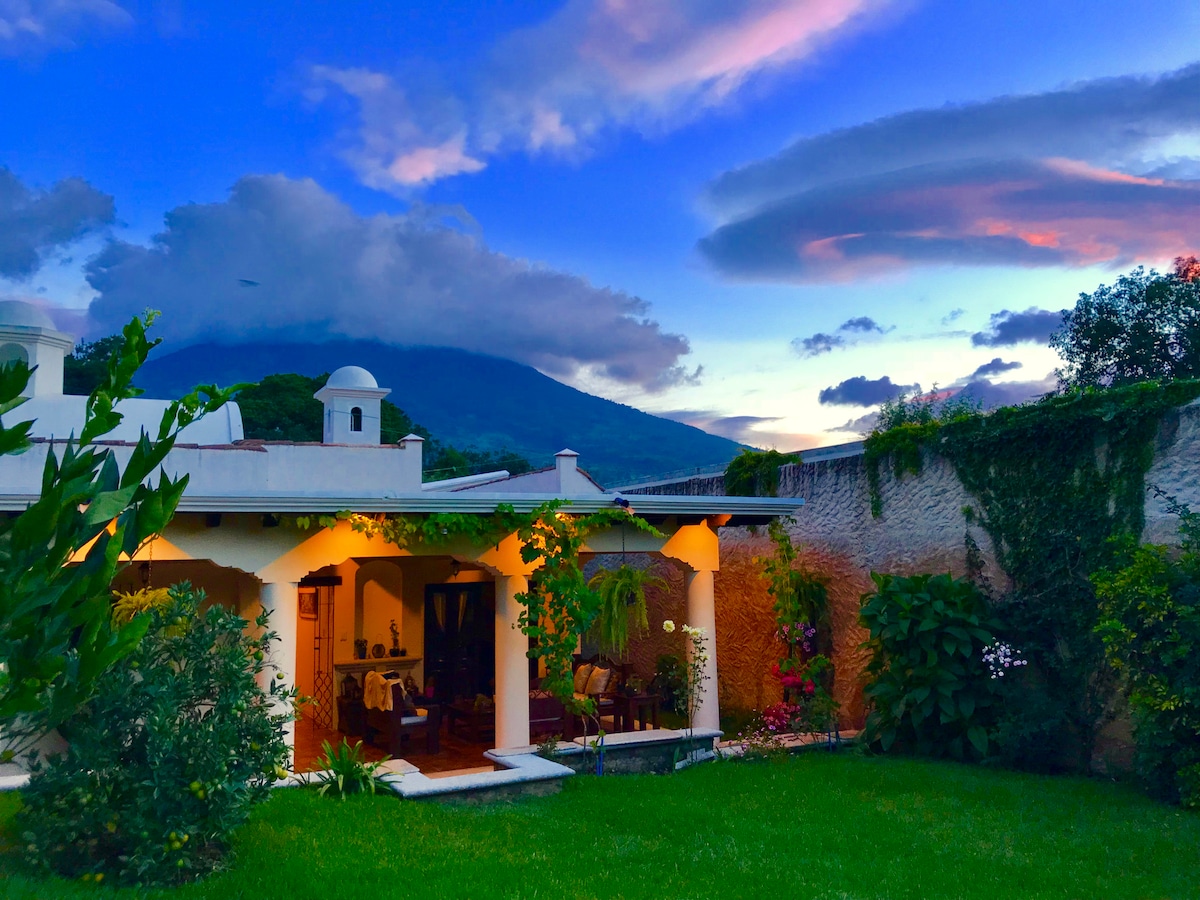 Para salir de casa y disfrutar con tranquilidad. Es una encantadora Villa, rodeada de bellos jardines, llena de paz, disfruta del canto de los pájaros al despertar y del sonido del agua de las fuentes que la rodean. Por la mañana la piscina climatizada es la opción antes de de ir a dar un paseo a la Antigua. Algo agradable es pedir que enciendan una fogata y compartir con la familia. Ubicada en complejo exclusivo, fuera del tráfico, ideal para desconectarse del mundo, y tan solo vivir y soñar.