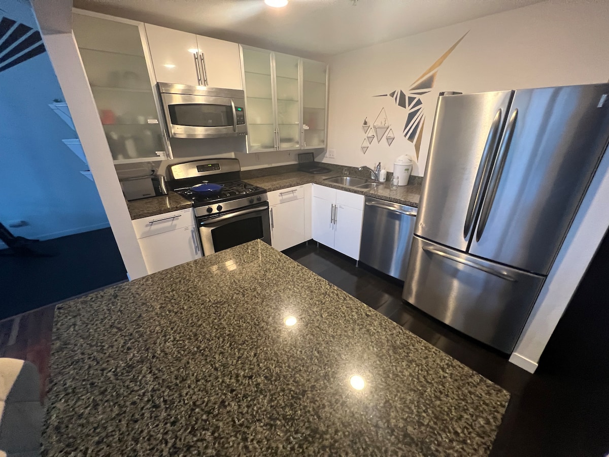Desconecta en este tranquilo loft en el bullicioso Santana Row. Los modernos azulejos de vidrio, la iluminación metálica personalizada y un plano abierto crean un espacio tranquilo y lleno de luz con un encanto elegante de estilo europeo. Relájate afuera en la acogedora mesa de bistró ubicada entre las palmeras. Para cumplir con los estrictos requisitos impuestos por la Asociación de Propietarios de Viviendas del edificio, hemos añadido un videoportero para el cumplimiento del ruido y el posible mal uso del edificio y el apartamento. Si necesitas un alojamiento más grande en Santana Row, consulta mi otro anuncio haciendo clic en mi perfil a continuación o accede a este enlace: www.airbnb.com/rooms/23754461 Elegante loft/condominio con un sinfín de mejoras en el edificio Santana Row Margo. Azulejos de vidrio modernos y pintura personalizada en todas partes, baño renovado con lavabo. Cama tamaño queen de felpa que ofrece un descanso nocturno sereno y privado. Accesorios de iluminación personalizados en todas partes y una plaza de aparcamiento subterránea GRATUITA en el garaje seguro debajo del edificio. El apartamento de lujo se encuentra en la zona más deseable de Silicon Valley, Santana Row. «The Row» es un complejo residencial, comercial, gastronómico y de entretenimiento de primer nivel en San José, California. Todo está a poca distancia a pie. No es necesario conducir. El apartamento es perfecto para viajeros de negocios o vacacionistas familiares. El loft es un diseño de concepto abierto y tiene una espaciosa cama tamaño queen con baño completo en suite y armario. El plano de planta abierta incluye cocina de tamaño completo y sala de estar. Tendrás toda la unidad solo para ti. Este loft de alta gama cuenta con los servicios que esperarías de unas vacaciones de clase mundial y un alquiler corporativo ejecutivo: • Loft de lujo totalmente amueblado con gran diseño de planta abierta. ~ 740 pies cuadrados. • 1 cama tamaño queen y baño completo. • Si reservas para 3 personas, se instalará un colchón de aire de tamaño doble XL de alta calidad a tu llegada. Mira las fotos, ya que es un colchón de aire de alta gama y se coloca junto a la encimera de la cocina. Si solo tienes 2 huéspedes y necesitas dos camas, puedes ponerte en contacto conmigo para conocer los precios y los arreglos antes de reservar. • Si reservas para 4 personas, se instalará un colchón de aire tamaño queen de alto perfil a tu llegada. Mira las fotos, ya que se colocará en la sala de estar. • Cable Comcast gratuito en un televisor de alta definición de 65 pulgadas. On Demand no está incluido. • Internet wifi de alta velocidad gratuito. • Una plaza de aparcamiento subterráneo asignada de cortesía. • Café y té Keurig de cortesía. • Preparado para los negocios: wifi, impresora y papel. • Calefacción/aire acondicionado central. Control de termostato Nest. • Caja fuerte/seguridad en el apartamento para tu comodidad. • Cocina moderna de tamaño completo con encimeras de granito y electrodomésticos principales. • Lavadora y secadora en el alojamiento (se incluye detergente y suavizante). • Frente a la Row, el mejor lugar para ver a la gente que se puede pedir. • No se admiten mascotas. • Prohibido fumar. • El estadio Levi's está cerca de Santana Row para aquellos que quieran ver un partido. Hay taxis y Uber disponibles. • Si buscas una unidad más grande, echa un vistazo a mi otro anuncio en Santana Row haciendo clic en mi perfil o en este enlace. • Otro anuncio: https://abnb.me/J4mK5I4DiL ¡El ambiente de Santana Row es extraordinario! Hay muchos restaurantes y tiendas en la zona que van desde informales hasta de alta gama; siempre hay algo que hacer aquí. Por otro lado, también hay salones de belleza y spas para mimarte. Muchos restaurantes, tiendas y lugares de entretenimiento están a poca distancia a pie de este apartamento. No hay necesidad de un coche. Santana Row también se encuentra cerca de una autopista para facilitar los desplazamientos. Siempre estoy disponible por teléfono durante tu estancia en caso de que tengas alguna pregunta o problema durante tu estancia. Trabajo cerca si necesitas algo durante tu estancia. Una vez que estés dentro, no me meteré a menos que necesites algo. Santana Row es un exclusivo centro comercial al aire libre en el corazón de San José. Hay muchos restaurantes y tiendas que van desde informales hasta de alta gama, un cine CineArts y salones y spas para una tarde relajante de mimos. Ubicación cómoda con fácil acceso a las autopistas 101, 880, autopista 280, 17 y 87. Principales aeropuertos: • A SJC (Aeropuerto de San José): 5,9 millas/alrededor de 13 minutos. • A OAK (Oakland International): 37,5 millas/alrededor de 43 min. • A SFO (Aeropuerto Internacional de San Francisco): 37,9 millas/alrededor de 45 min. Centros de convenciones: • A 3,7 millas del Centro de Convenciones San José McEnery. • A 7,5 millas del Centro de Convenciones de Santa Clara. • A 3 millas del SAP Center/HP Pavilion. • A 8,4 millas del nuevo estadio Levi's. Hogar de los 49'ers. El transporte público en San José (y en toda la parte de South Bay del Área de la Bahía) lo proporciona principalmente VTA, que opera el servicio de autobús y tren ligero (tranvía moderno). Caltrain también proporciona servicio ferroviario a través de una parte del condado de Santa Clara. BART también es una opción dentro del Área de la Bahía. Este apartamento está muy limpio y se mantiene actualizado sin escatimar gastos. Las imágenes reflejan su estado actual y no hay sorpresas. Este loft está directamente en la calle Santana Row, encima de Kit & Ace y LuLulemon. Desde tu ventana puedes ver Tesla Motors, Straits Cafe, Gucci y Cocola Bakery. Es realmente la mejor ubicación si te hospedas en Santana Row o San José.