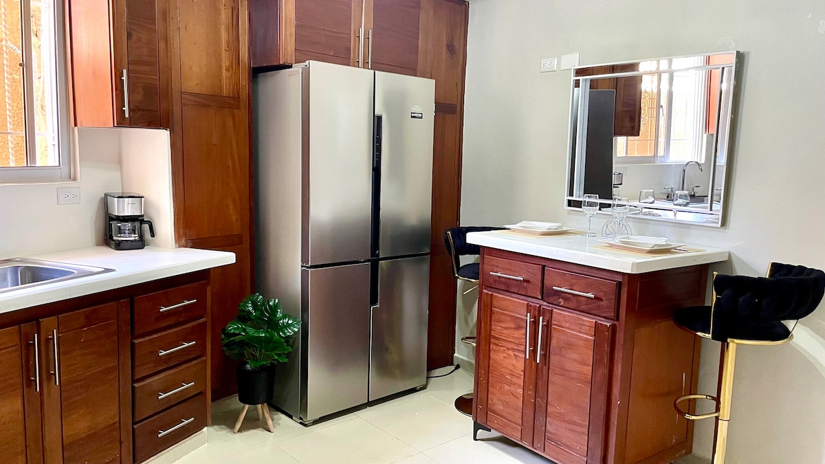 Luxury spacious Penthouse located in one of the best and safe areas of SFM with security guard, cameras 24/7, 3 bedrooms with TV’s and 2 full bathrooms and 2 half bathrooms, Jacuzzi, terrace, hot water, with A/C in all 3 rooms and also main floor and second floor have A/C units, inversor when power goes off, intelligent washer and dryer and much more. Everything you need to have the best comfort in your stay. Also, it is close to the major stores, restaurants and attractions. Capital exit