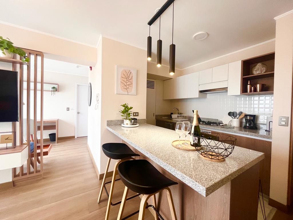 Disfruta de este dpto. de estreno y moderno, ideal para turismo y/o negocios, en una de las zonas más exclusivas de San Isidro. Ubicación céntrica cerca a Miraflores, Barranco, Malls y variedad de restaurantes. 100% equipado, cuidadosamente pensado para hacerte sentir como en casa, con lindas áreas comunes como piscina infinita en el rooftop y gym (con previa reserva y sujetos a disponibilidad por aforo/mantenimiento/ normas del condominio, ver detalles en acceso de los huéspedes)
