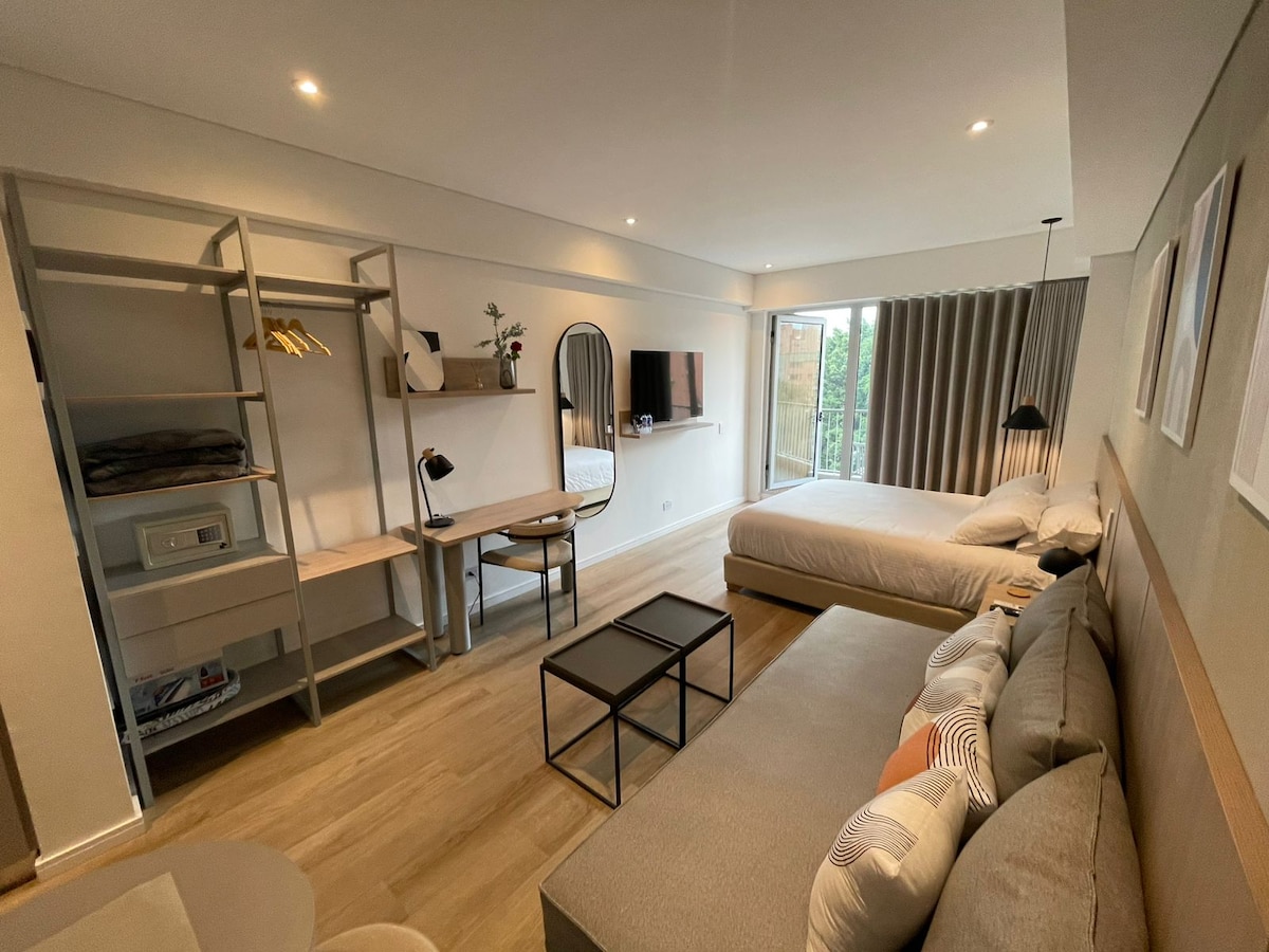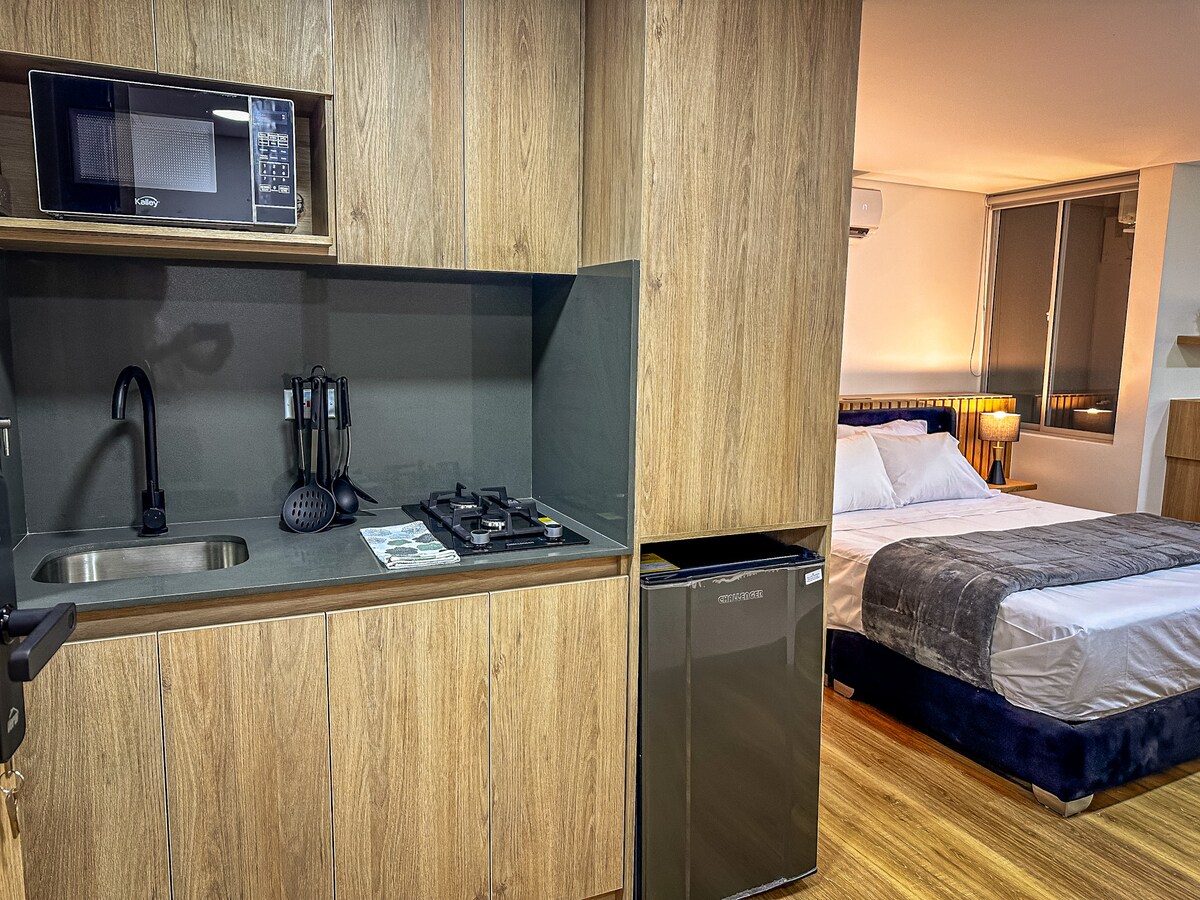 Stylish 1BR apartment in the heart of La 70 and 5 minutes walking to Laureles area. Enjoy a cozy space with balcony, full kitchen, A/C, fast WiFi, free laundry, and self check-in with digital codes. Work remotely with access to a coworking space inside the building. Steps from top restaurants, cafés, metro, and local life. On-site support staff 24/7. Thoughtfully designed to inspire comfort, creativity, and connection with the city.
