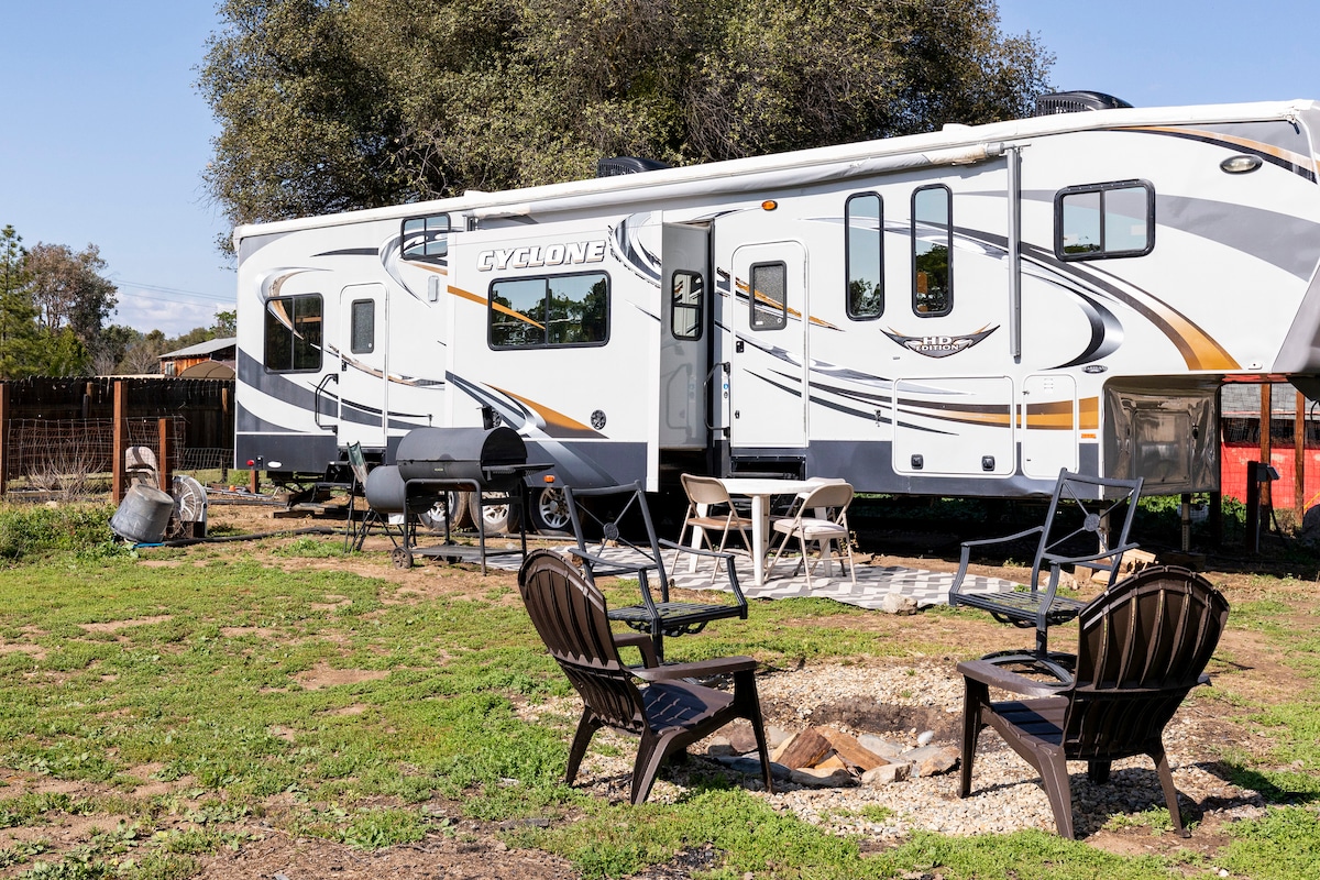 Disfruta del estilo de vida de «camping» en autocaravana en esta granja privada en el campo. Date un chapuzón en la piscina, haz una fogata o siéntate y disfruta de la puesta de sol y las estrellas. La autocaravana se encuentra en su propio «camping» privado en nuestra propiedad de 3 acres. Estás a solo 5 minutos de la ciudad y de los restaurantes. Podrás acampar y disfrutar de la zona privada fuera de la caravana. Podrás recorrer toda la propiedad y disfrutar del paisaje. ¡Enciende la barbacoa (Traeger y Blackstone Grill) y disfruta de la piscina!