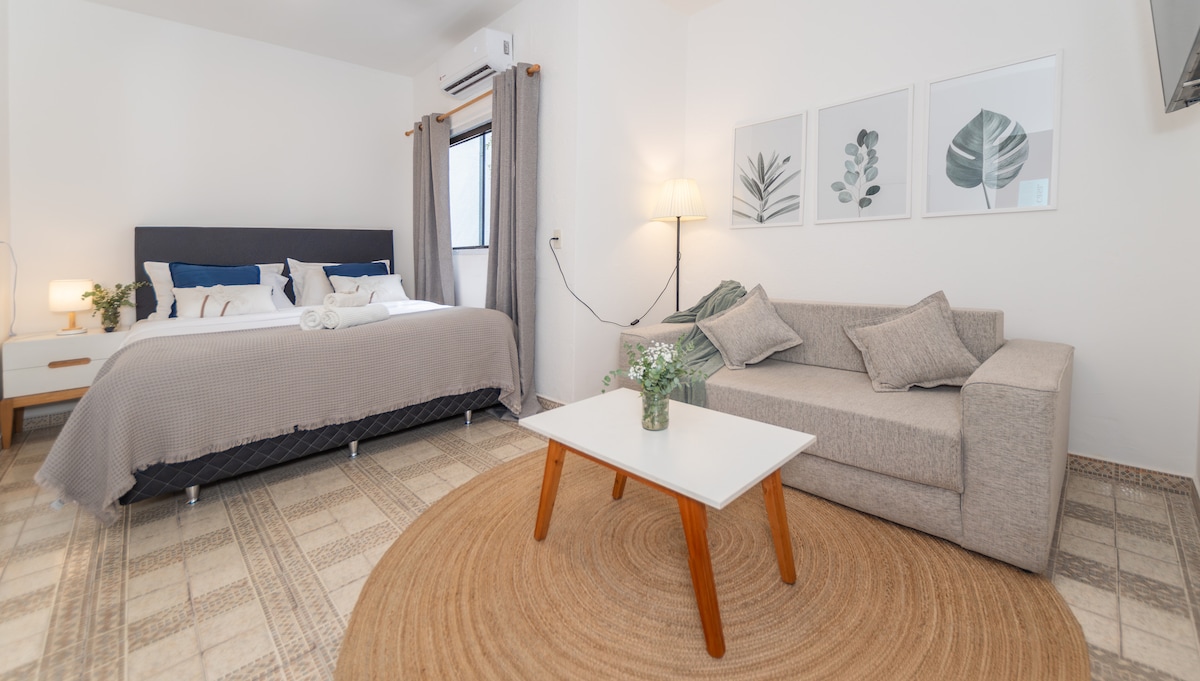 Disfrutá un apartamento moderno, muy cómodo y bien conectado para 1, 2 o 3 personas, a minutos del Aeropuerto Internacional. Supermercado 24/7 a 1 cuadra, farmacia y restaurantes próximos. A pasos del parque Ñu Guasu, el Comité Olímpico, la Conmebol y el CIT. Acceso rápido al Eje Corporativo, Shopping del Sol y La Galería. Equipado con aire acondicionado, wifi, mesa de trabajo, TV, cocina y patio privado con hamaca. Servicios de traslado y desayuno. Ideal para viajes en pareja o conexión aérea.