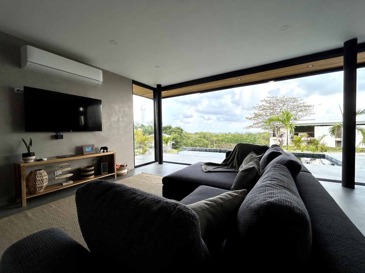 Lujosa casa de cristal, terminada en julio de 2021 con impresionantes vistas al mar y piscina privada. Privacidad absoluta, rodeada de una reserva natural de 100 acres. Las suites de 3 dormitorios tienen baños privados con aire acondicionado, duchas interiores/exteriores y vistas increíbles. Propiedad cerrada. Disfruta de la terraza de yoga con vistas a la selva y observa a los monos aulladores desde la piscina. Cocina de chef y hermosos muebles hechos a medida en toda la casa. Blue Sound fue diseñado por el galardonado arquitecto costarricense Roberto Rivera.