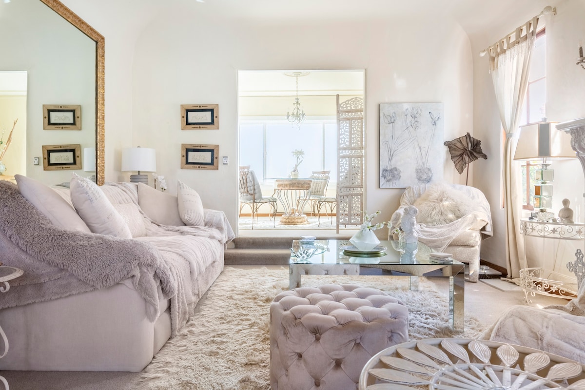 Villa Opal es una pequeña casa independiente con su propio jardín privado en un barrio residencial seguro rodeado de hermosas casas de alta gama cercanas. Entra por una puerta de seguridad y una acera lejos de la calle, es seguro y aislado. Hermoso jardín con asientos al aire libre, es un oasis para que puedas escapar de la ajetreada escena de la ciudad. Wifi de fibra óptica: espacio de oficina exclusivo Claraboya de techo alto de 12 pies Chimenea eléctrica, jardín privado Lavadora/Secadora en el aire acondicionado de la unidad