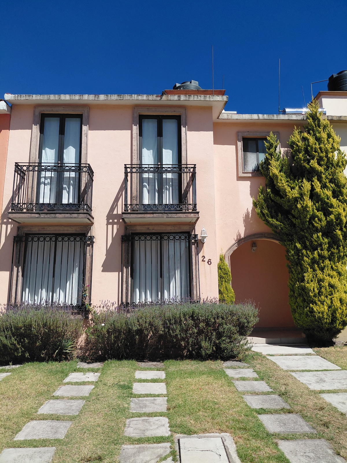 Hermosa casa ubicada en un fraccionamiento muy seguro, lindo y tranquilo, cuenta con dos filtros de seguridad. Está ubicada a 7 minutos del aeropuerto internacional de la ciudad de Toluca. Cuenta con jardín, estacionamiento para dos autos, sala comedor, cocina equipada, dos recámaras, 1.5 baños y patio de servicio con lavadero. Cuenta con servicio de WIFI Hay áreas verdes amplias (compartida), donde se puede practicar deportes al aire libre. También hay un área de juegos para niños.