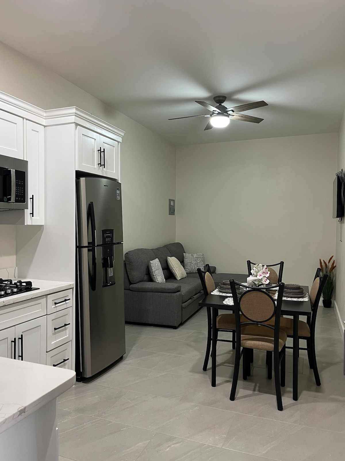 Alojate con la familia en este alojamiento con estilo, y disfruta la Ciudad de San Miguel, y todos los rincones de la perla de Oriente!! Apartamento completamente amueblado, acogedor y elegante, 2 salas, comedor, cocina, dos habitaciones, 2 baños completos, electrodomesticos de lujo, todo lo que necesitas para una estadia placentera y confortable. Además de comercios cercanos en la misma Plaza Comercial q facilitarán la adquisiciónde productos o artículos necesarios para facilitar tu visita